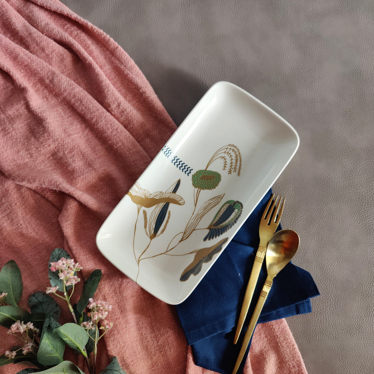 Host in style with the Pookkal Platter a true showstopper. Its expansive surface and luxurious blue tone make it perfect for presenting appetizers, desserts, or a medley of dishes.