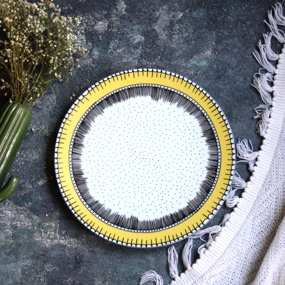 Elevate your dining experience with the Clouds Part Over a Marigold Field Dinner Plate. Featuring intricate marigold-inspired designs, this plate brings a vibrant artistic touch to your table.