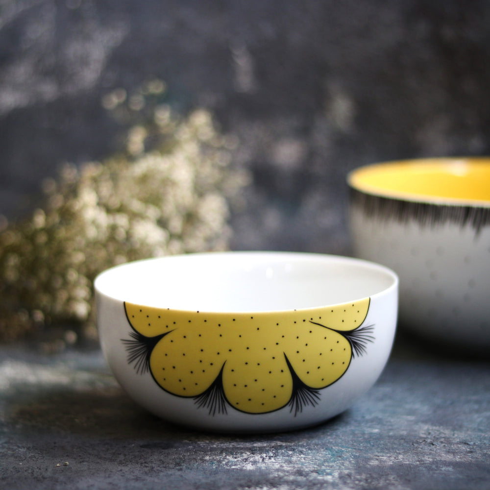 The Clouds Part Over a Marigold Field Small Bowl blends practicality with captivating design. Its deep shape and vibrant floral accents make it a centerpiece for any dining occasion.