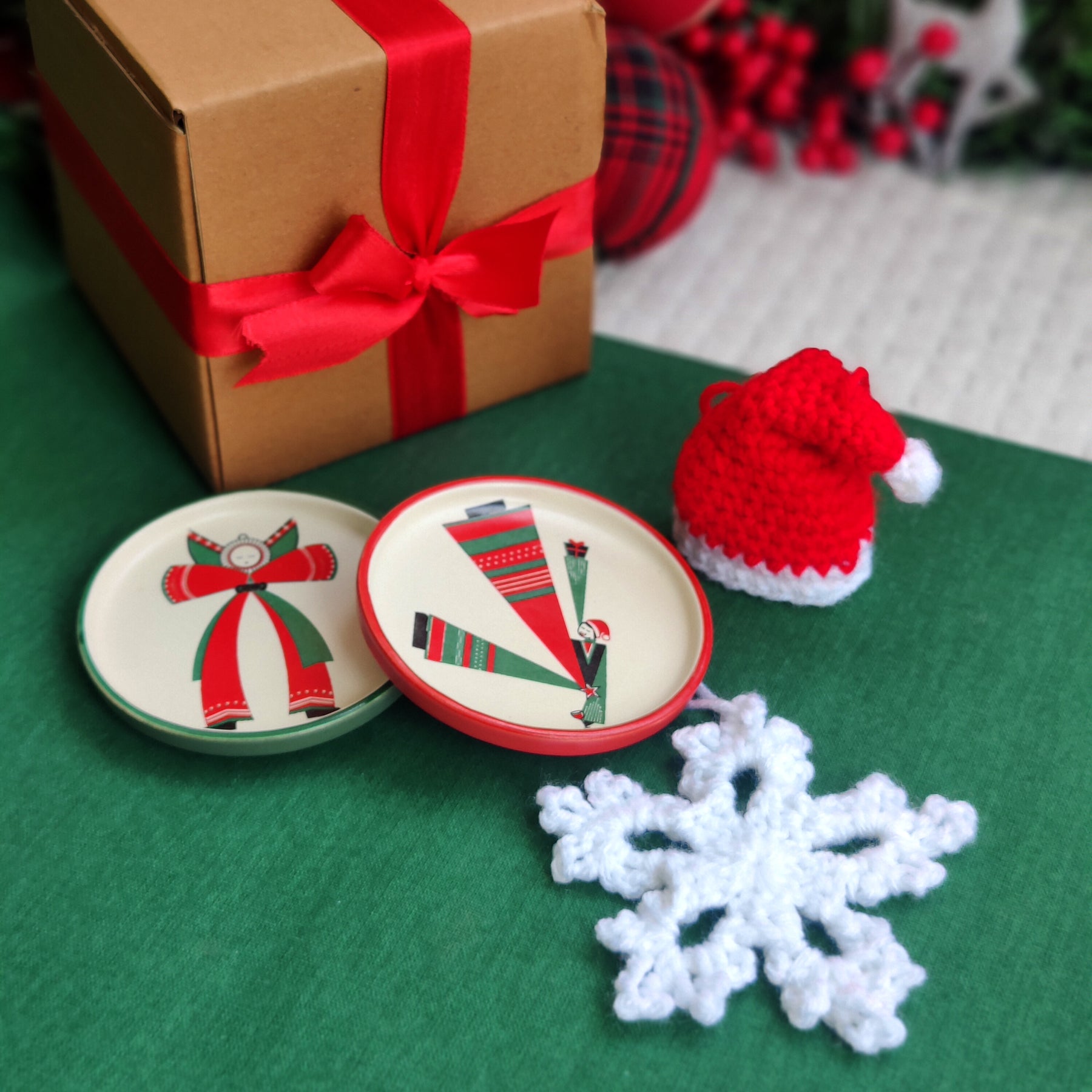 This box packs in two coasters and a pair of adorable crochet ornaments all set to jingle, mingle, and spread some serious Christmas cheer. Perfect for gifting or keeping (we won’t tell 😉).